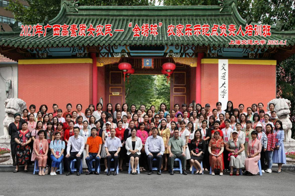 由广西壮族自治区妇女联合会和广西壮族自治区农业农村厅共同主办,由太阳集团城网站2003与太阳集团城网站2003承办的“2021年广西高素质女农民——‘金绣球’农家乐示范点负责人培训班”于5月31日至6月5日在太阳集团城网站2003七宝校区开班。来自广西壮族自治区的100名“金绣球”农家乐示范点负责人参加培训学习。广西壮族自治区妇联副主席孔献玲,广西壮族自治区妇联妇女发展部部长覃英奎,广西壮族自治区农业农村厅科教处副处长奉小兵,中共太阳集团城网站2003党委书记周培出席开班典礼。